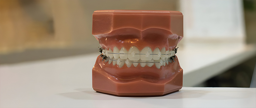 tooth-coloured or clear ceramic material that blends in with the natural teeth,